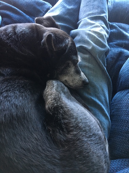 I hold her now, too, a dead rabbit in one arm and a frantic dog in the other. After a while I rest B in a box for the night and I take my pup upstairs, shut her in my room to sleep. For days she is listless and depressed, constantly sniffing B’s house, checking to see if she’s come back. I bribe her to eat with a bagel and cream cheese from the Cafe. I coax her out on walks. I ask her what she needs and when she does not know I do my best to figure it out.